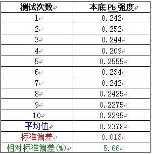 镍白铜313(Pb:60ppm)中Pb检出限:(3×0.013)/ 0.0036 (工作曲线斜率)