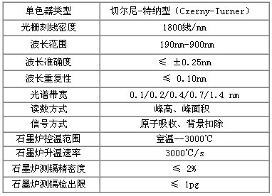 表3.AAS6000原子吸收光谱仪主要技术参数